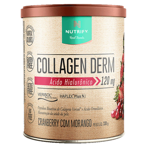 Cranberry com Morango: Colágeno hidrolisado, peptídeos bioativos de colágeno hidrolisado com peso molecular médio de 2kDa (Verisol®), ácido ascórbico, mix de vitaminas e minerais (ácido ascórbico, acetato de DL-alfatocoferila, sulfato de zinco monoidratado, acetato de retinol, picolinato de cromo, selenito de sódio, D-biotina e colecalciferol), concentrado de rabanete e cenoura, hialuronato de sódio obtido pela fermentação de Streptococcus zooepidemicus, ácido ortosilícico estabilizado em cloreto de colina, acidulante ácido cítrico, aromatizantes naturais e edulcorante glicosídeos de esteviol de Stevia rebaudiana Bertoni. NÃO CONTÉM GLÚTEN. CONTÉM AROMATIZANTE.