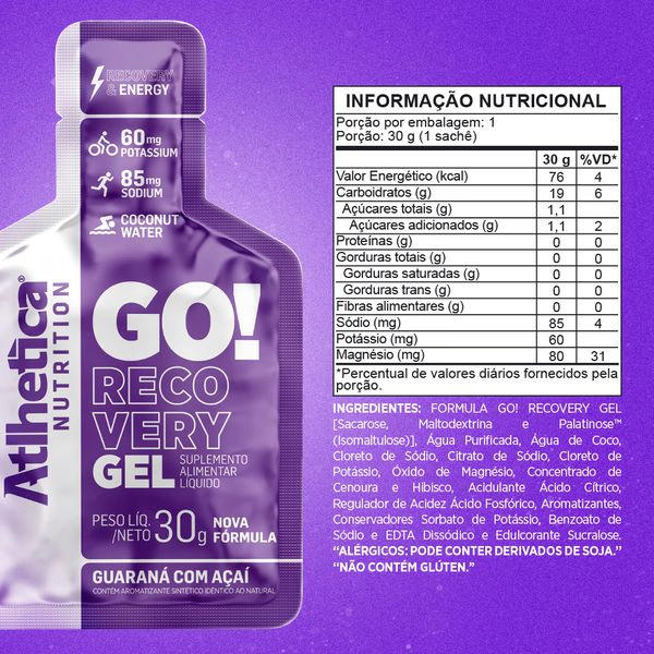 GO! Gel Recovery (Display com 10 Sachês de 30g) -ATHLETICA